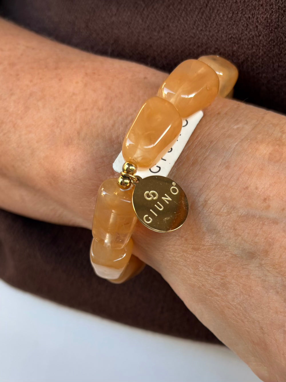 Leuk deze neutrale armbanden met platte rechthoekige kralen om je outfit een beetje meer uitstraling te geven.