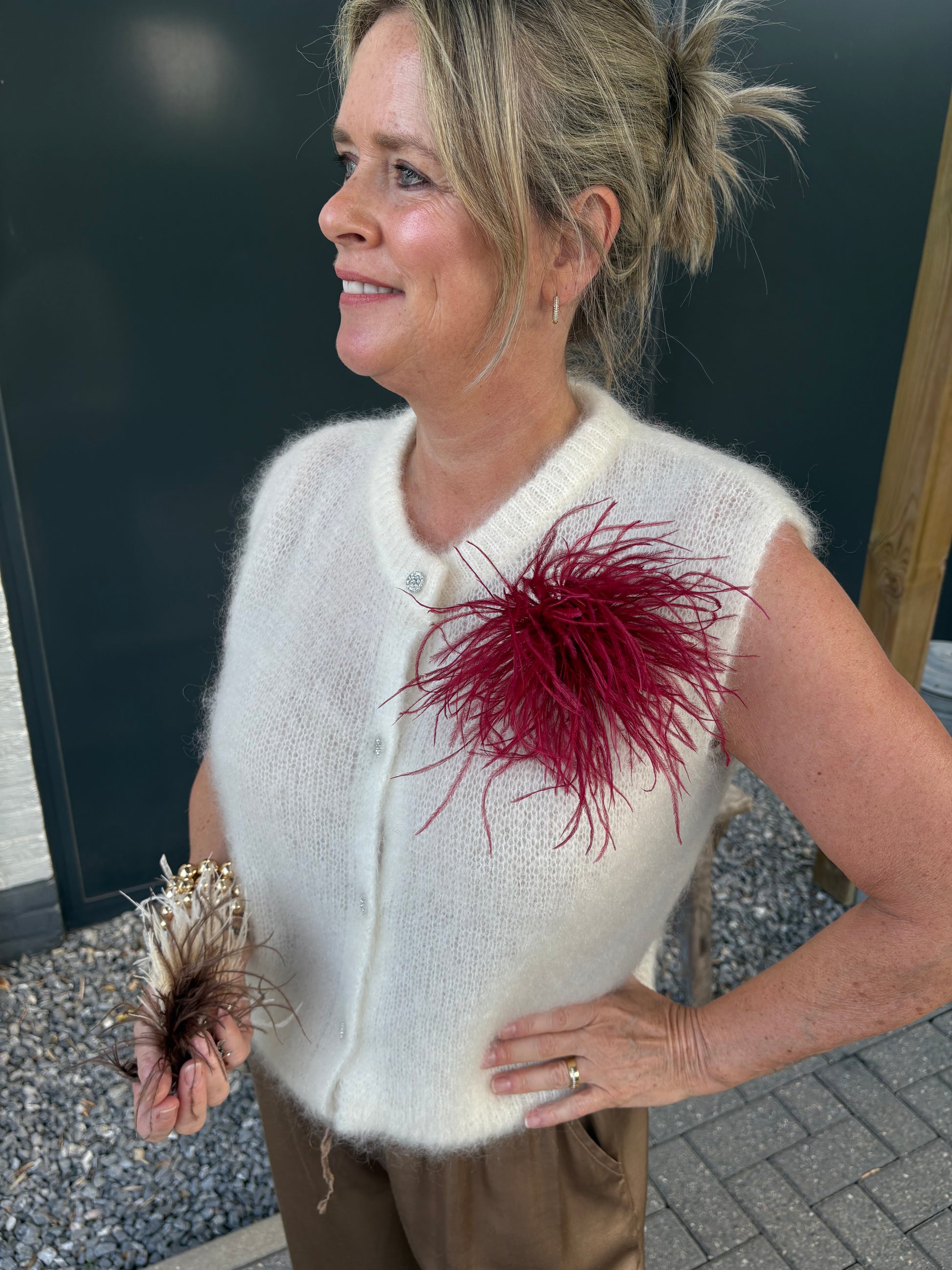 Pimp je outfit met deze leuke broche van veertjes.