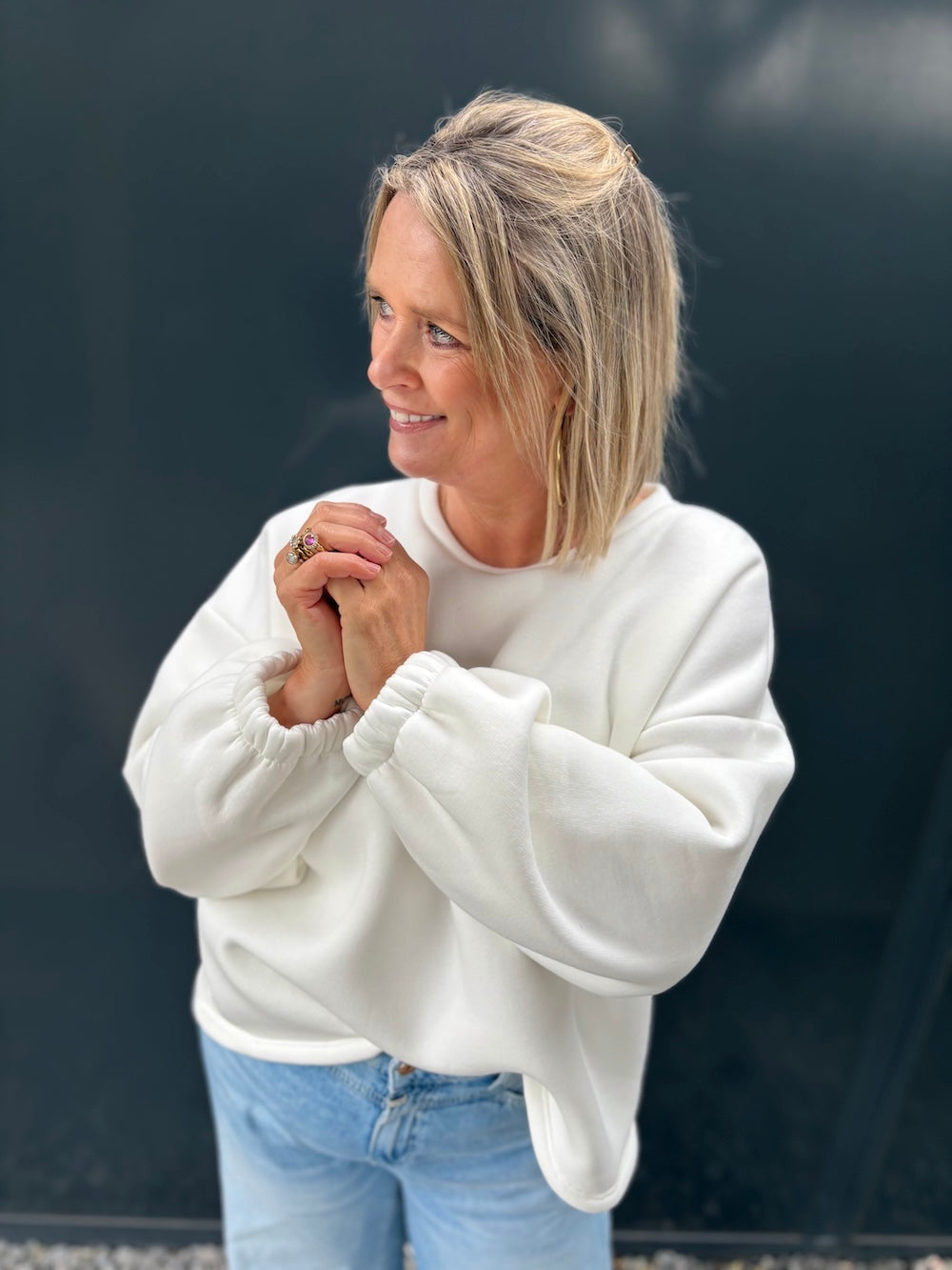 Deze sweater is super oversized en heeft een manchet met elastiek, een lekker nonchalant model dus. Van binnen lekker zacht en warm dus deze draag je vanaf nu!
