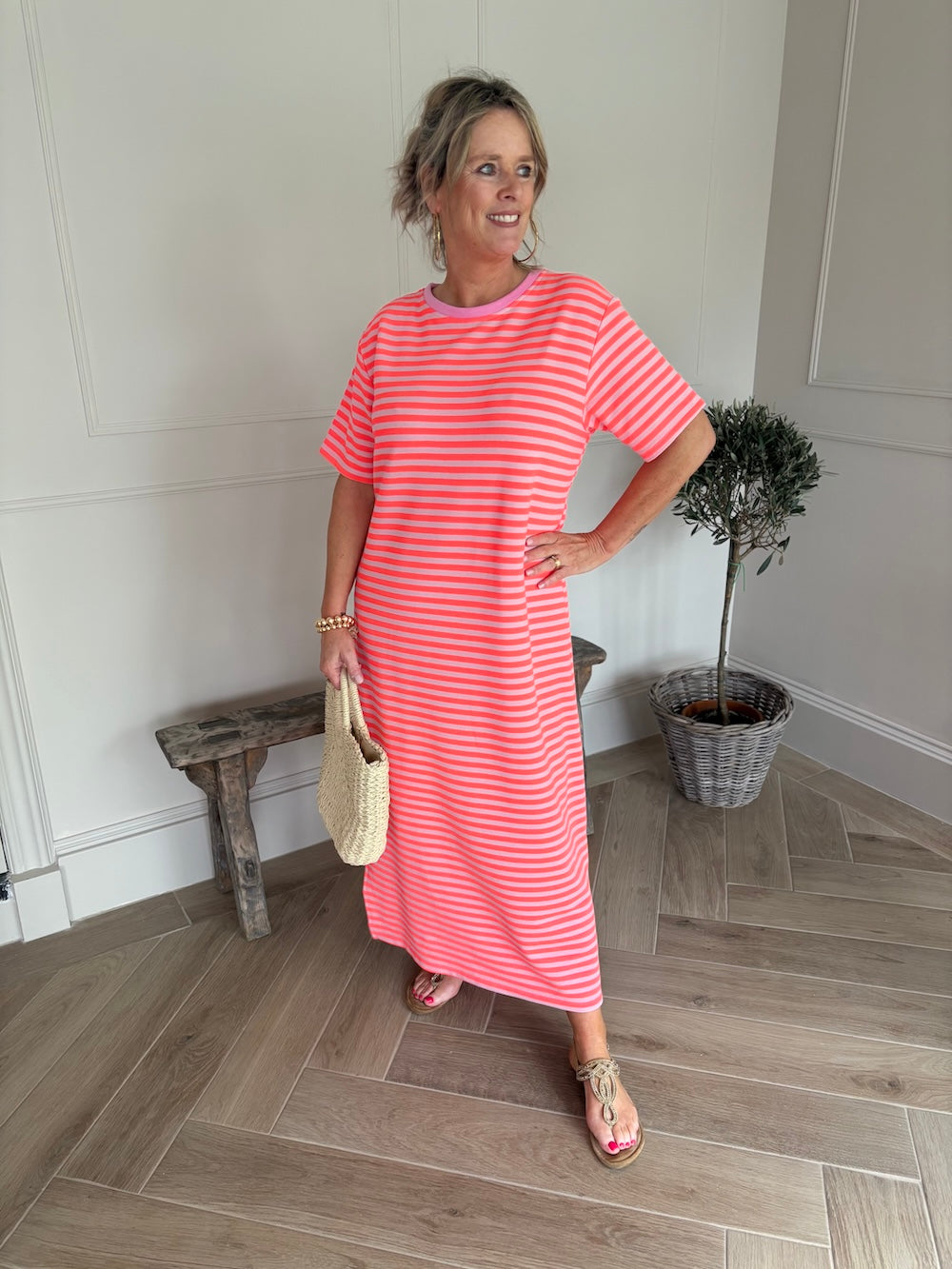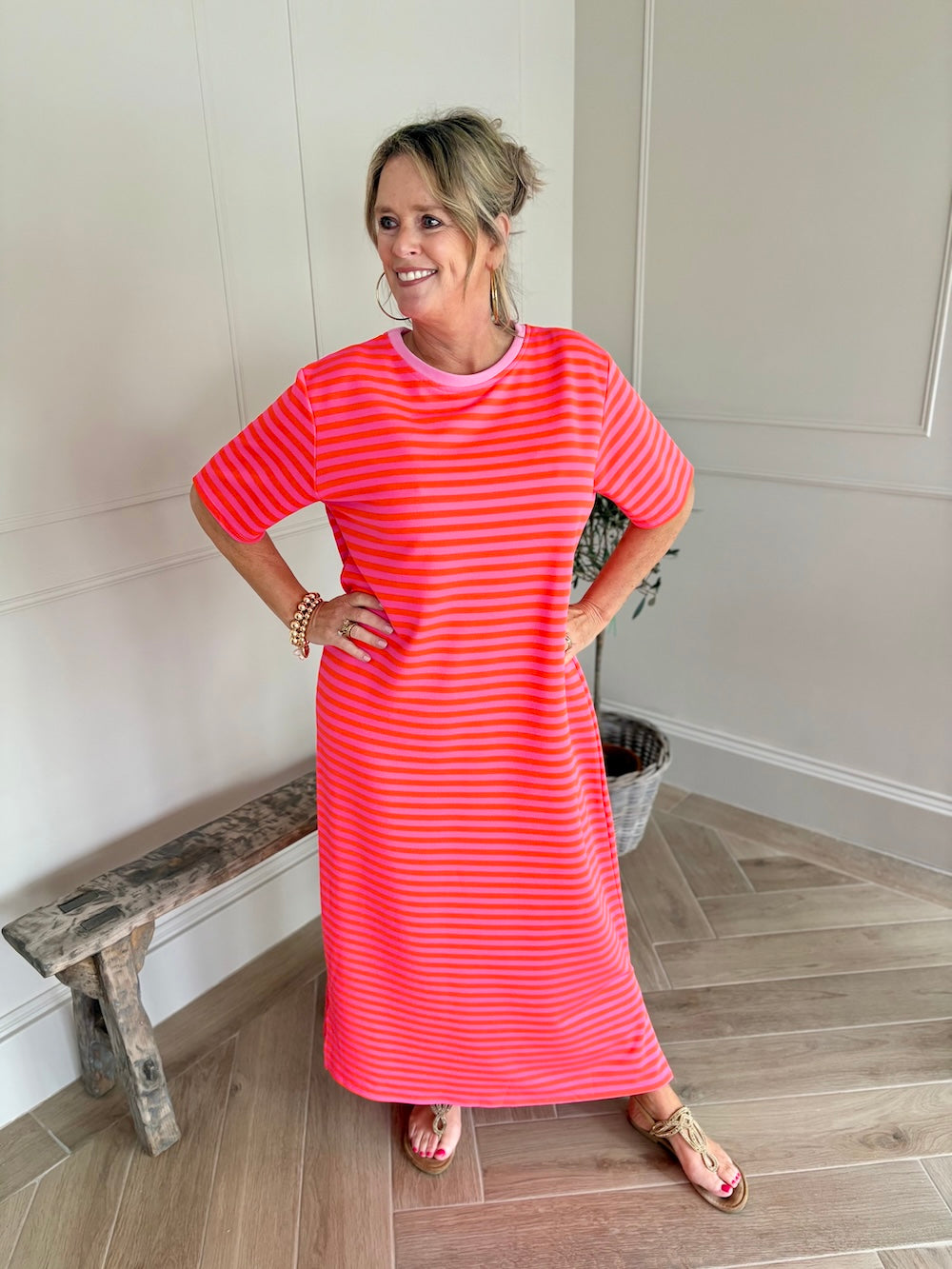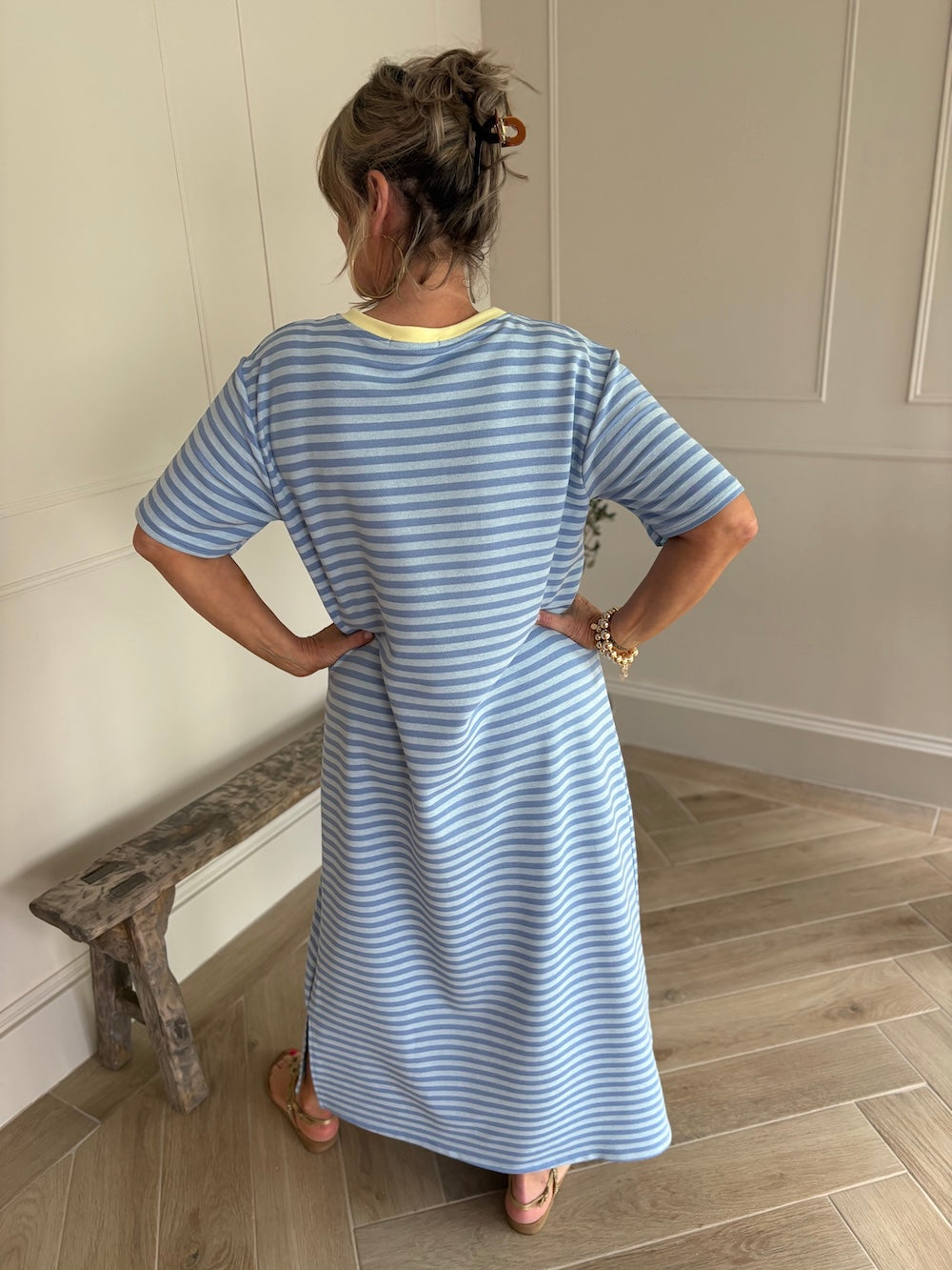 Sweaterjurk gestreept lang