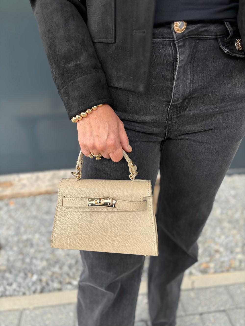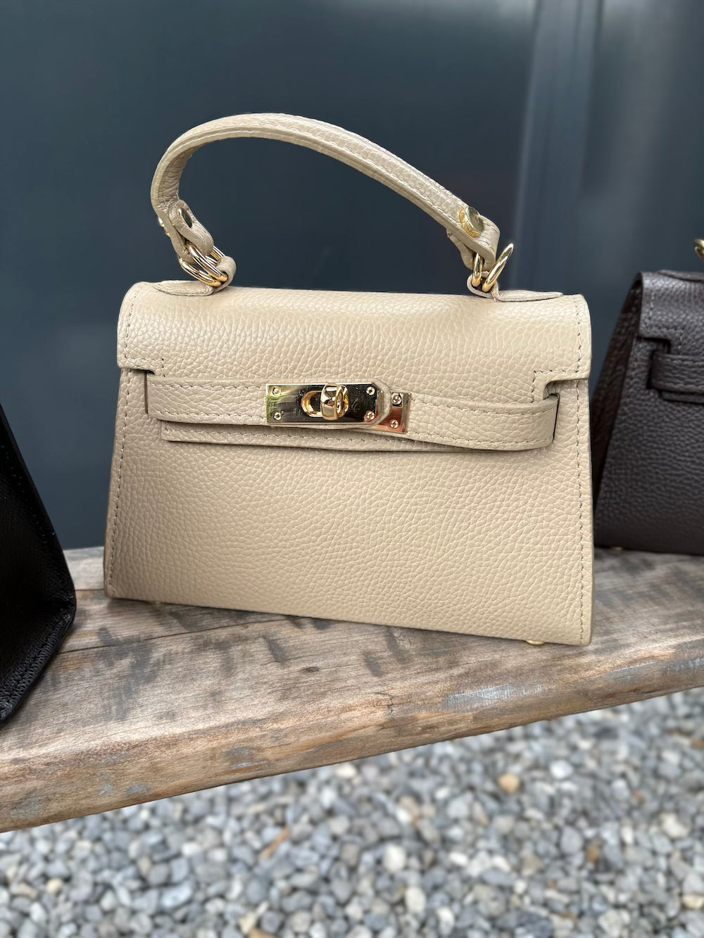 Mooi classy tasje van echt leer. Met mooie sluiting en gouden hardware.
