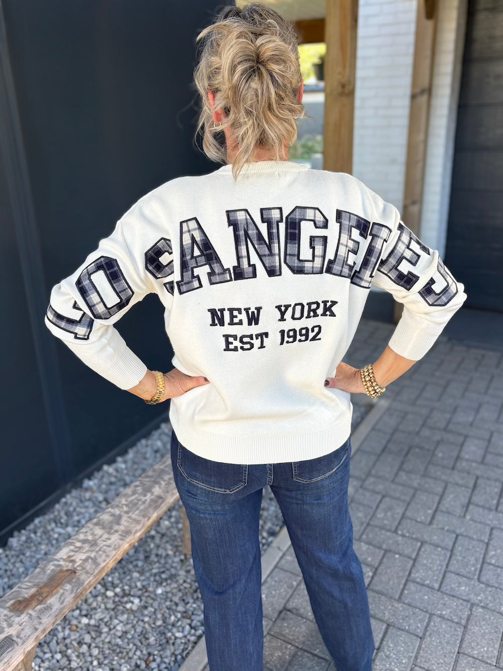 Deze heerlijke zachte trui heeft een geweldige print op de mouwen en de rug. De print heeft een leuk geruit motief. Deze trui staat leuk op alles of je nu een rok aan wil of een jeans of een geklede broek deze trui is ideaal.