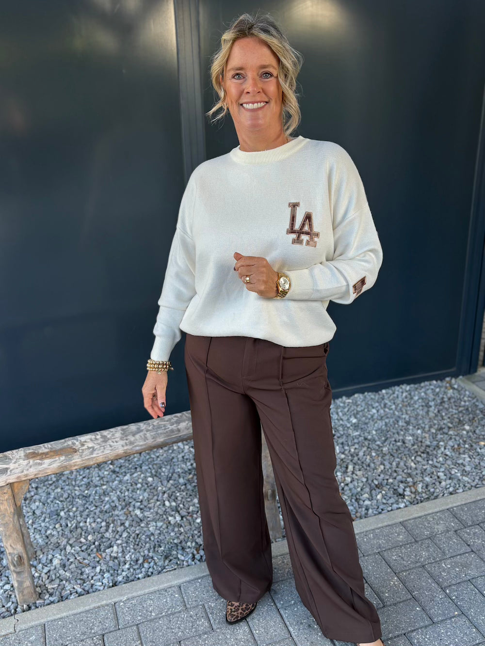 Deze heerlijke zachte trui heeft een geweldige print op de mouwen en de rug. De print heeft een leuk geruit motief. Deze trui staat leuk op alles of je nu een rok aan wil of een jeans of een geklede broek deze trui is ideaal.