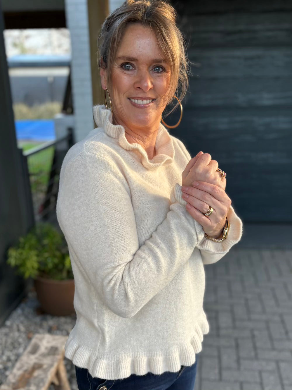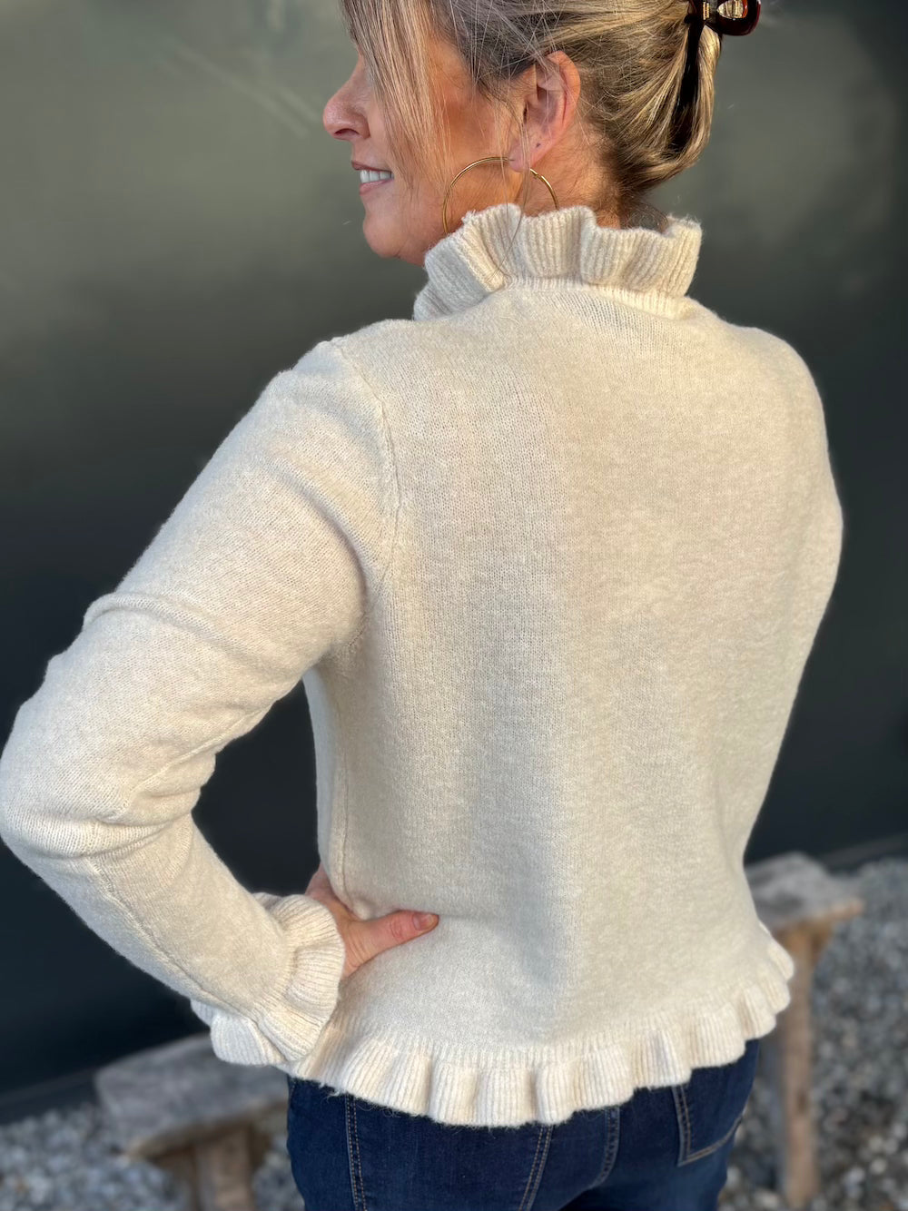 Trui met froezel details crème