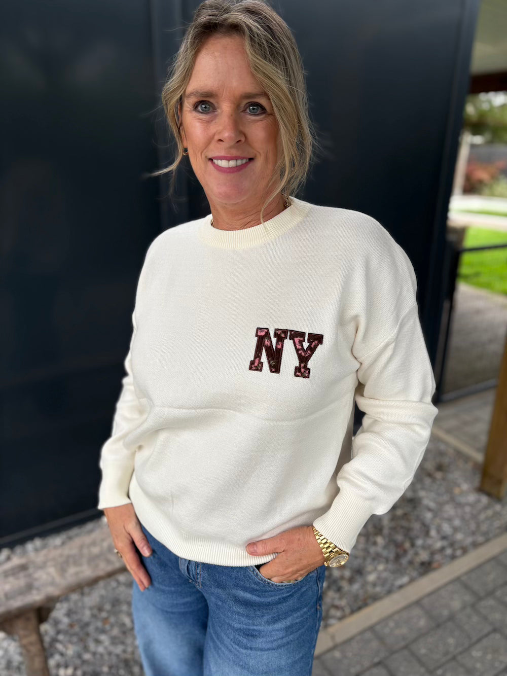 Deze gave trui wil je gewoon hebben. De applicatie New York staat op de achterkant en dat maakt van deze zachte trui weer een echte eyecatcher. Op de voorzijde staat een kleine applicatie NY.
