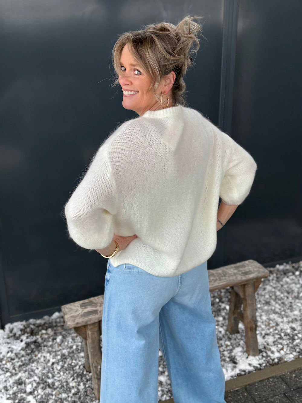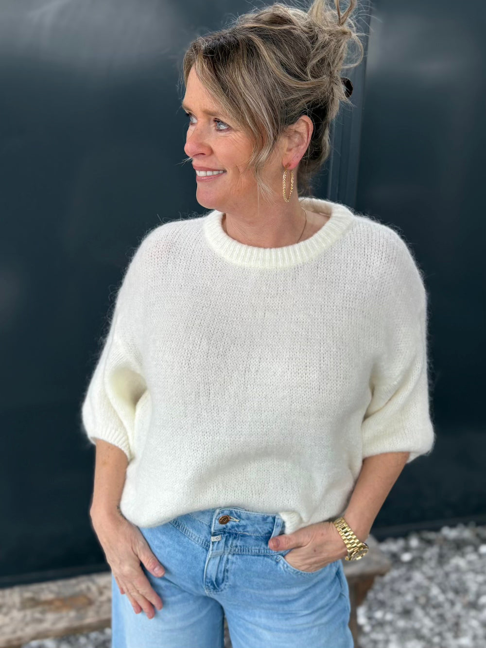 Dit truitje met 3/4 mouw combineer je makkelijk op vrijwel alles in je garderobe. Of je nu een rok of een broek draagt een pantalon of een jeans het kan allemaal.