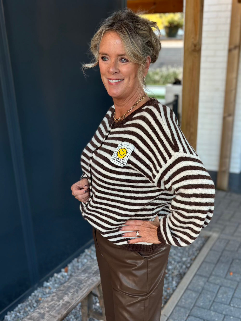 Vestje bruin wit gestreept