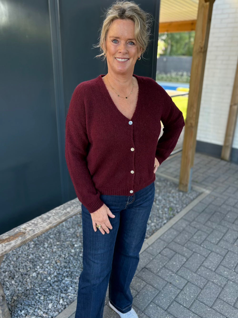 Vestje lange mouw burgundy